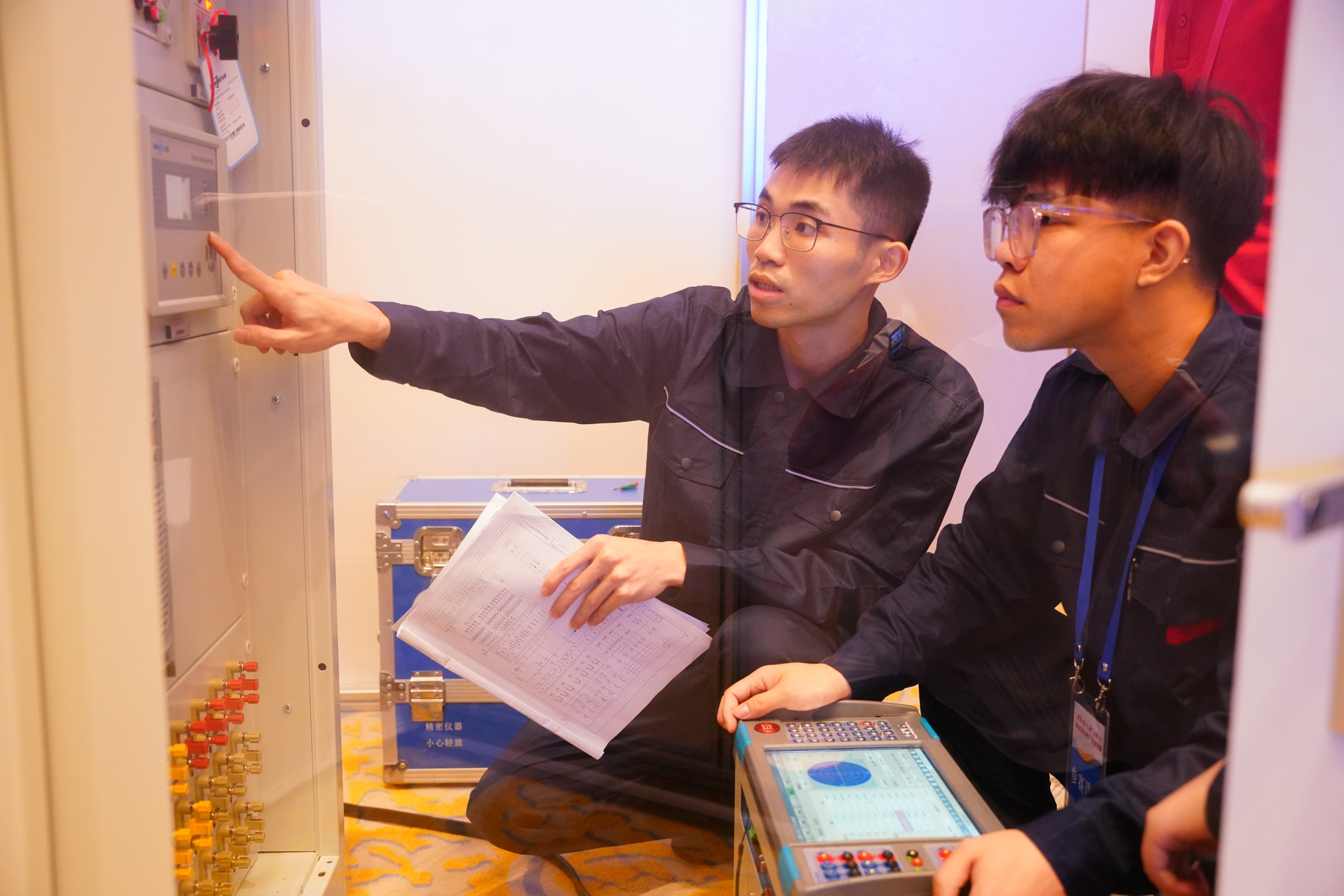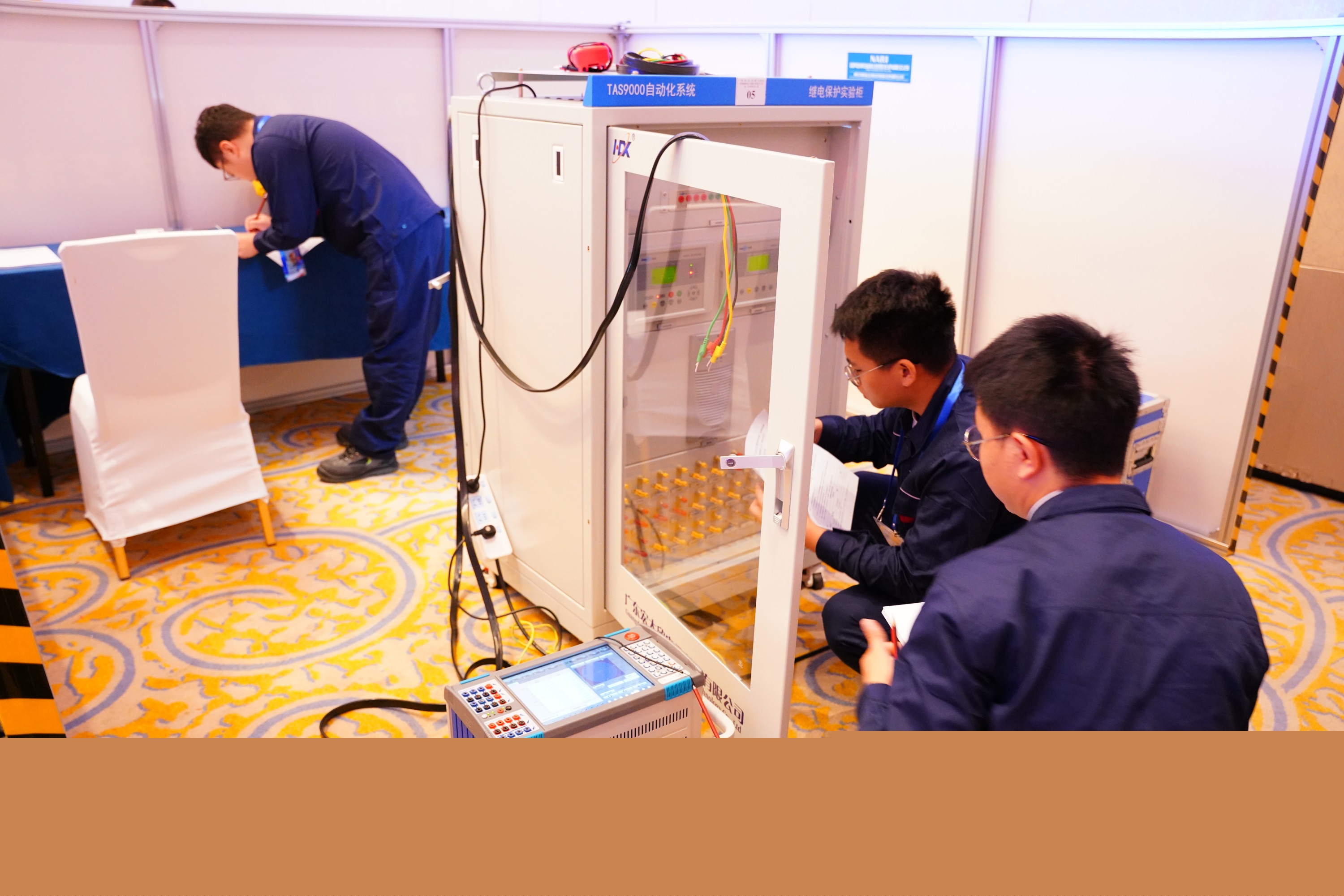 技能競賽分為技能操作考試和理論知識考試兩大部分。9月10日至11日,進行技能操作考試比賽,包括個人項目J1二次回路接線與調試和團隊項目J2繼電保護故障排查與系統測試、J3現代電廠自動控制系統綜合能力運用。